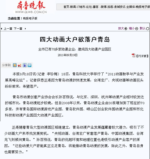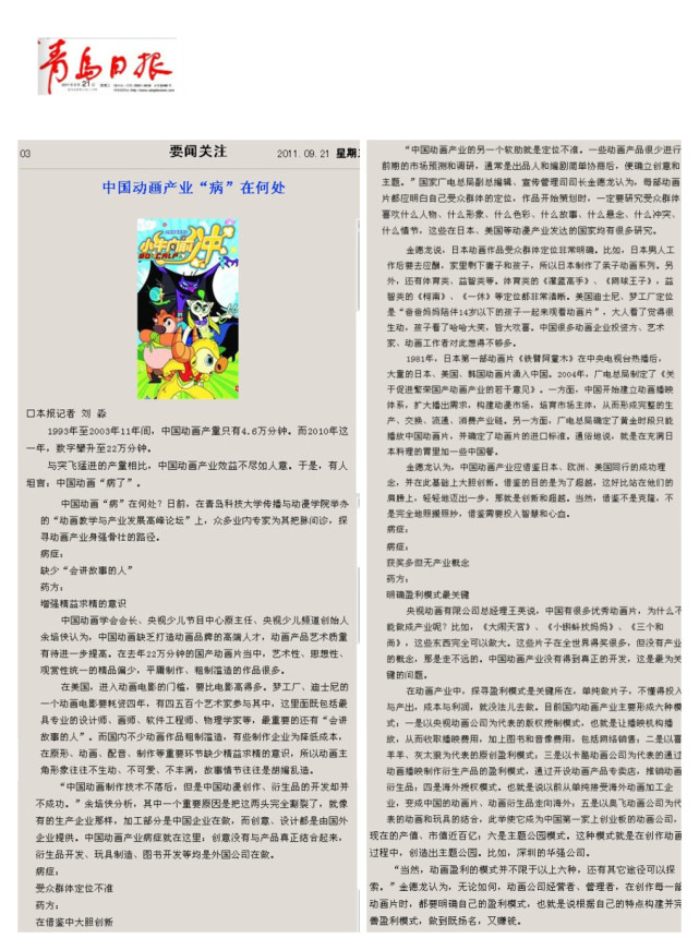 9月18日青岛电视台《今日报道》http://lanmu.qtv.com.cn/system/2011/09/18/010018880.shtml