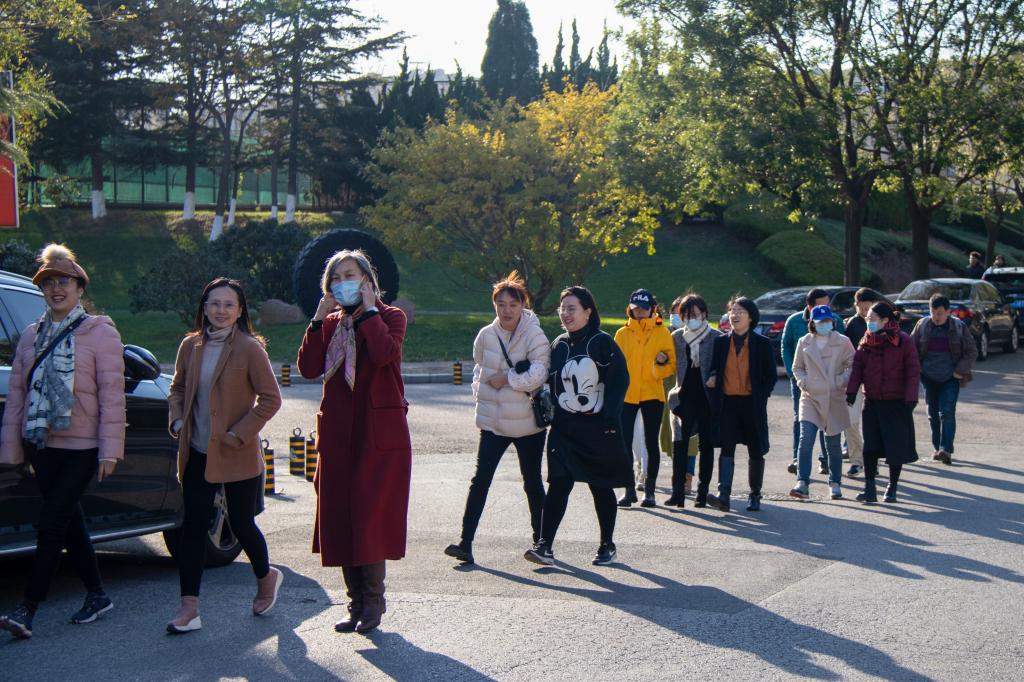 教职工们精神焕发,兴致盎然,从yl6776永利集团办公楼出发,边走边交流,途经大角牛雕塑、图书馆等地,最终抵达北苑B6楼学院新办公大楼,参观新的办公场所并合影留念。
