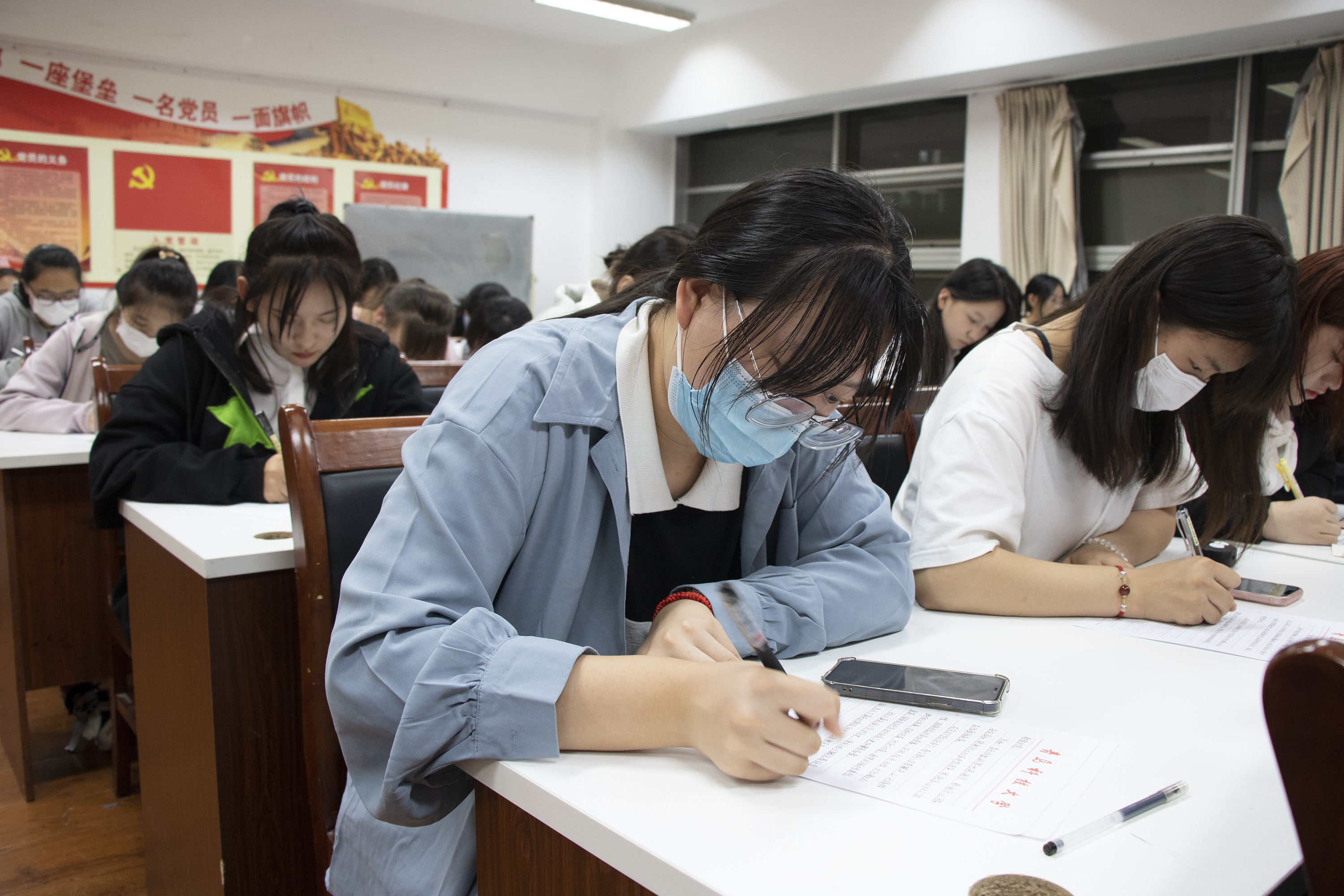 同学们认真学习党史,了解党的发展历程,从思想、政治、文化等多方面加深了对党的认识。随后,他们拿起手中的笔,全身心投入地表达着自己的爱意与敬佩,书写着给党的一封封饱含深情的信。