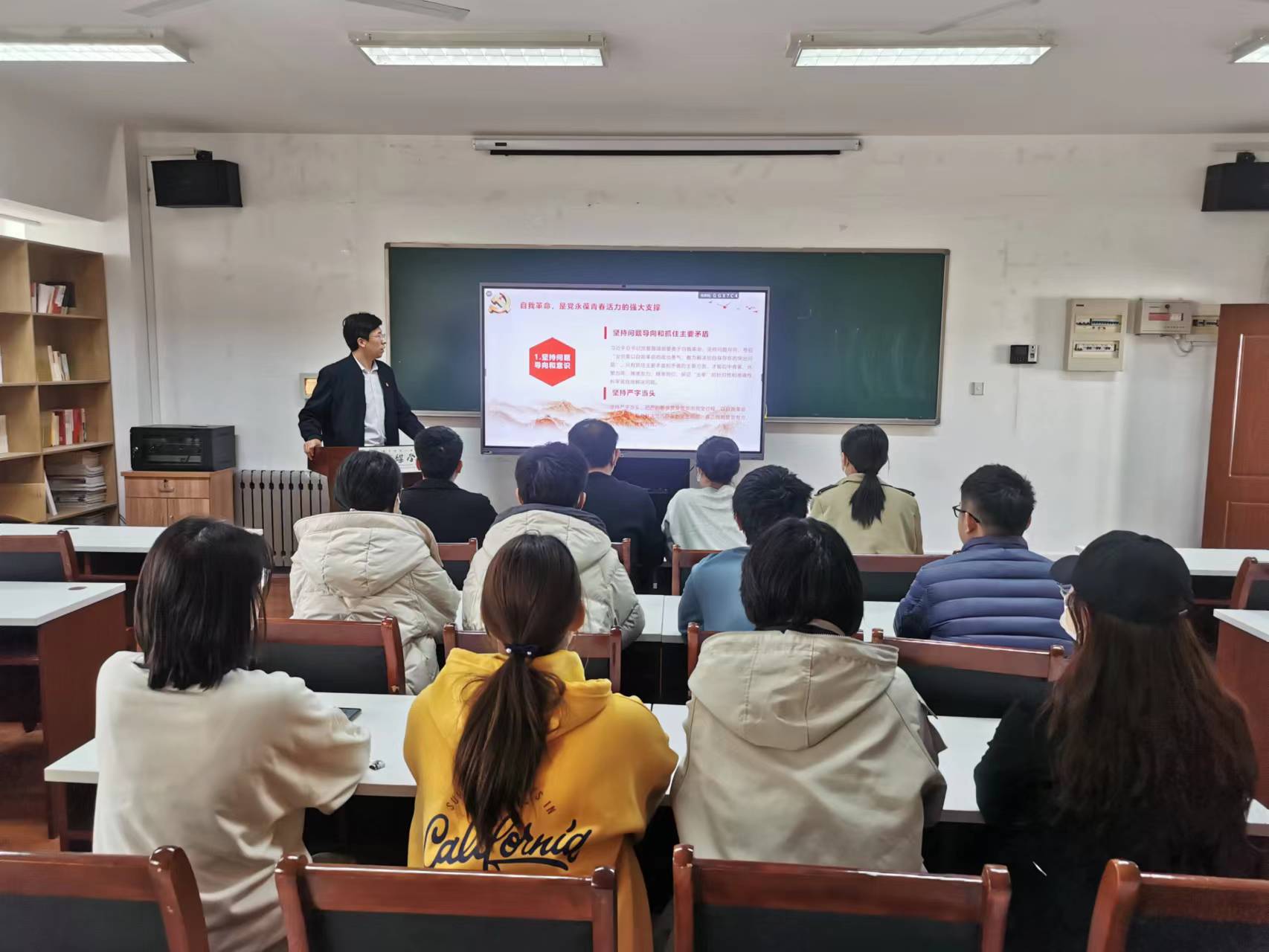 4月26日,yl6776永利集团在310会议室开展“牢记初心使命,推进自我革命”主题党课活动。yl6776永利集团全体专职辅导员,全体学生党员参加活动。党课由党总支书记刘志国主讲。