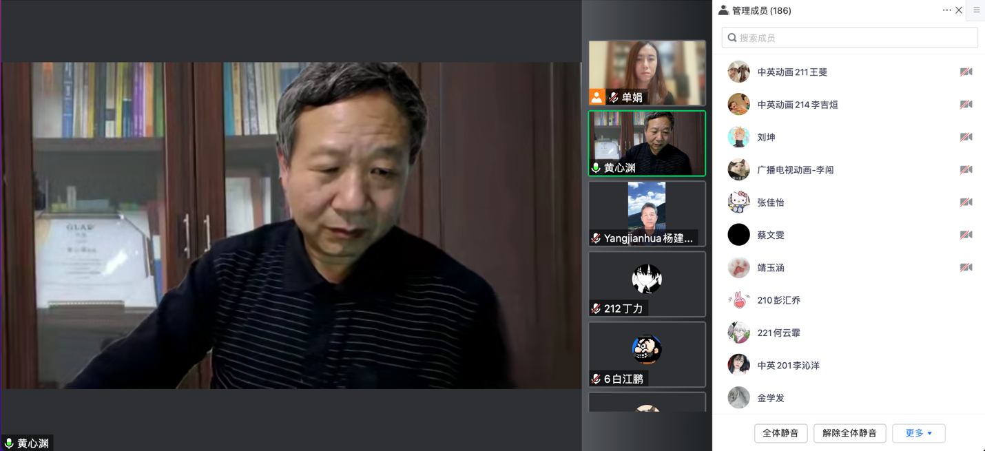 12月8日,中国传媒大学动画与数字艺术学院书记、博士生导师黄心渊教授应邀通过腾讯会议在线上为我院师生作了题为“动画与元宇宙”的讲座。yl6776永利集团执行院长杨建华教授亲自主持,学院动画专业师生和相关专业的研究生共两百多人聆听了讲座。