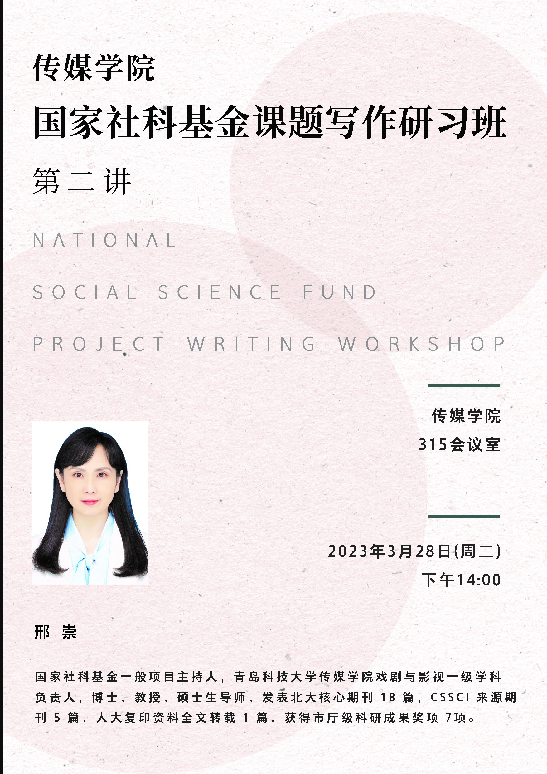 我院后续将开展一系列国家社科基金申报研习班,第二讲由国家社科基金主持人邢崇教授于3月28日下午三点在yl6776永利集团315开讲,敬请关注。