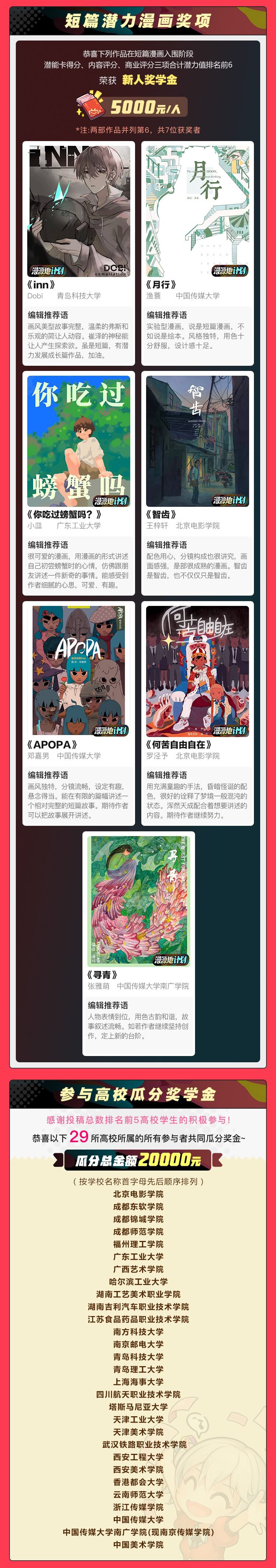 2023年,国内最大最具影响力的动漫平台哔哩哔哩(B站)首次进行“漫源地计划”高校学生潜力漫画大赛征稿,本次比赛有包括北京电影学院、中国传媒大学、中国美术学院、南京艺术学院在内60多所国内动画专业顶尖高校的学生作品共同参加。经过专家评选和全网投票,永利官网动画专业于小博老师指导,崔译丹同学主笔的漫画《INN》以短篇漫画第一名的成绩,获得BILIBILI年度奖学金,青科动画作品又一次获得业界最高荣誉。