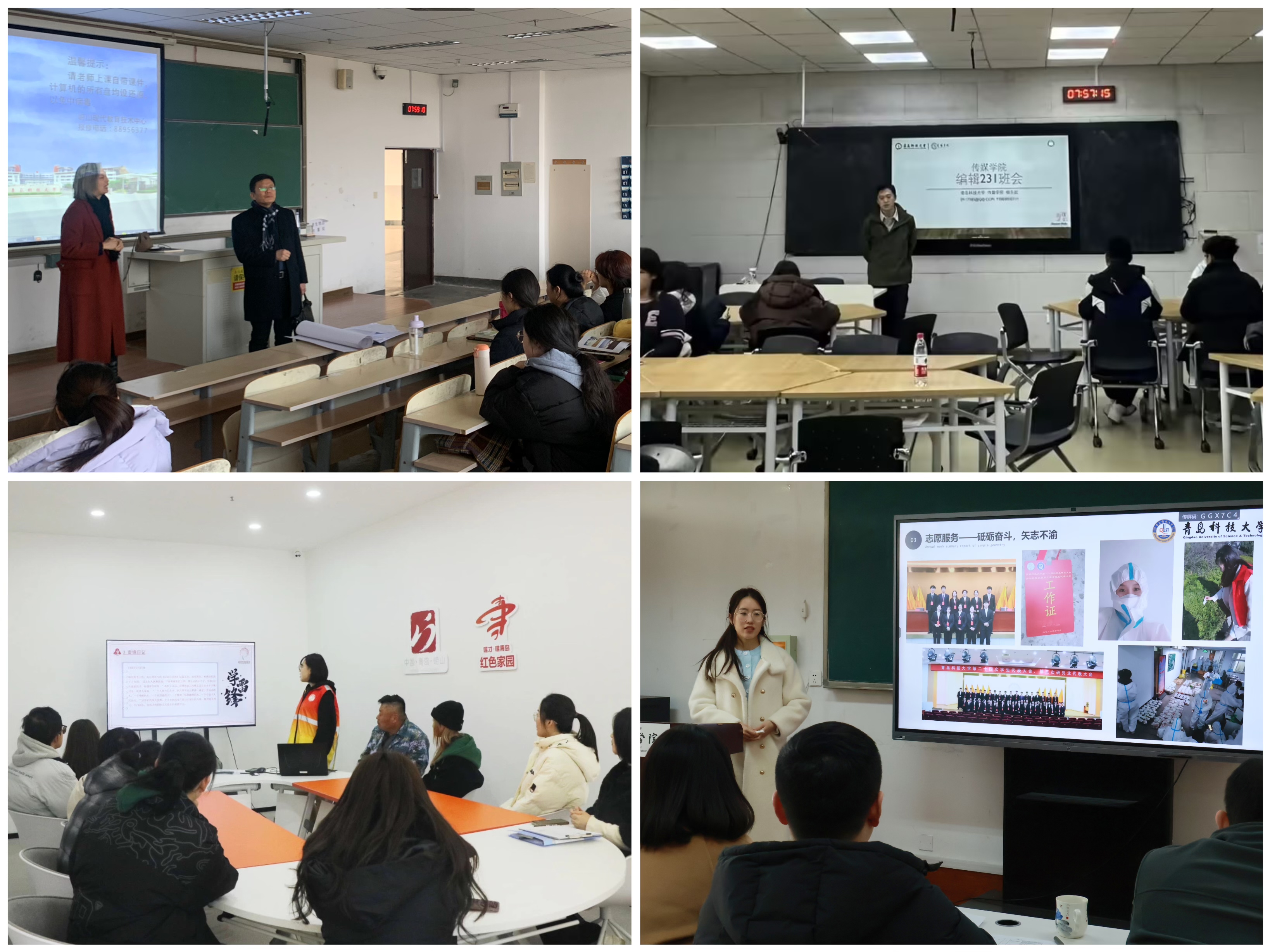 思想引领树导向,将“逐级讲”与“全员讲”一体推进,“讲安全”与“讲发展”有机结合,“线下讲”与“线上学”协同联动,全覆盖讲授思想铸魂、校园安全、诚信学风、心理健康、文明修身等内容,培养“尊法治、有德性、守契约、讲诚信、能吃苦、敢担当”的高素质专业化人才。学风建设筑根基,学院党政领导深入课堂听取开学第一课,就教学秩序、学生精神风貌、教学方法反馈等听取意见建议。组织辅导员、班主任和导师等以宿舍走访、座谈等方式,凝心聚力推进学业规划、考研帮扶、诚信教育等工作。充分把握山东省优秀学生、山东省优秀学生干部答辩等为契机,以朋辈榜样引领激励学风。志愿服务稳推进,持续擦亮“小漫姐姐”志愿服务品牌,依托“学雷锋”主题团日活动,落实与科大悦苑社区、小河东社区“日善堂”养老院新学期服务规划,稳步推进“美+思政”特色育人。