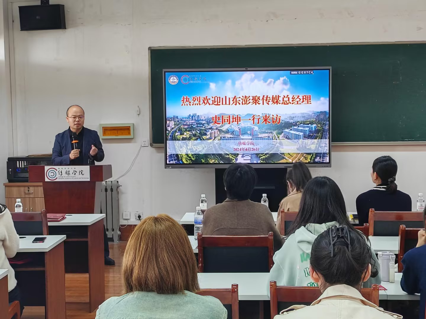 为深入推进产学研融合,寻求校企合作共赢,助力学校人才培养和企业发展,4月26日下午,yl6776永利集团院长张洪坤、党委书记刘志国热情接待了山东澎聚传媒总经理史同坤一行3人,校企洽谈合作交流,开展聘任仪式、校友讲堂、就业宣讲等系列活动。yl6776永利集团辅导员及近200名学生代表参加活动。活动由学院党委副书记兼副院长刘海波主持。