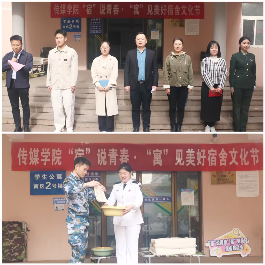 学院突出党建引领、管理协同、服务下沉、文化浸润和自我治理,以“创文明雅舍,筑和谐校园”为主题,营造健康文明、积极向上的宿舍文化氛围。坚持进宿舍问需问情,学院领导深入学生宿舍与学生代表恳谈座谈,聚焦学生的“急难愁盼”问题,了解宿舍环境、硬件设施及日常管理方面的难点堵点,认真记录并现场一一回应,以陪伴关爱暖人心。坚持树榜样对标对表,将新出炉的yl6776永利集团2024年毕业生考研光荣榜在学生宿舍区和学院楼同步展示,邀请传媒学子身边的榜样——青岛市优秀退役大学生士兵针对行为规范、素质养成作经验分享,邀请优秀退伍学子做内务整理与示范;坚持抓管理抓细抓实,组织全体学生学习学校“标杆宿舍”和“优秀舍长”评选标准,并结合宿舍安全教育警示片等线上资源,针对宿舍中存在的安全隐患、不文明现象展开讨论,教育引导学生关注宿舍安全与文明宿舍建设,努力将学生宿舍建成思政教育“加油站”。