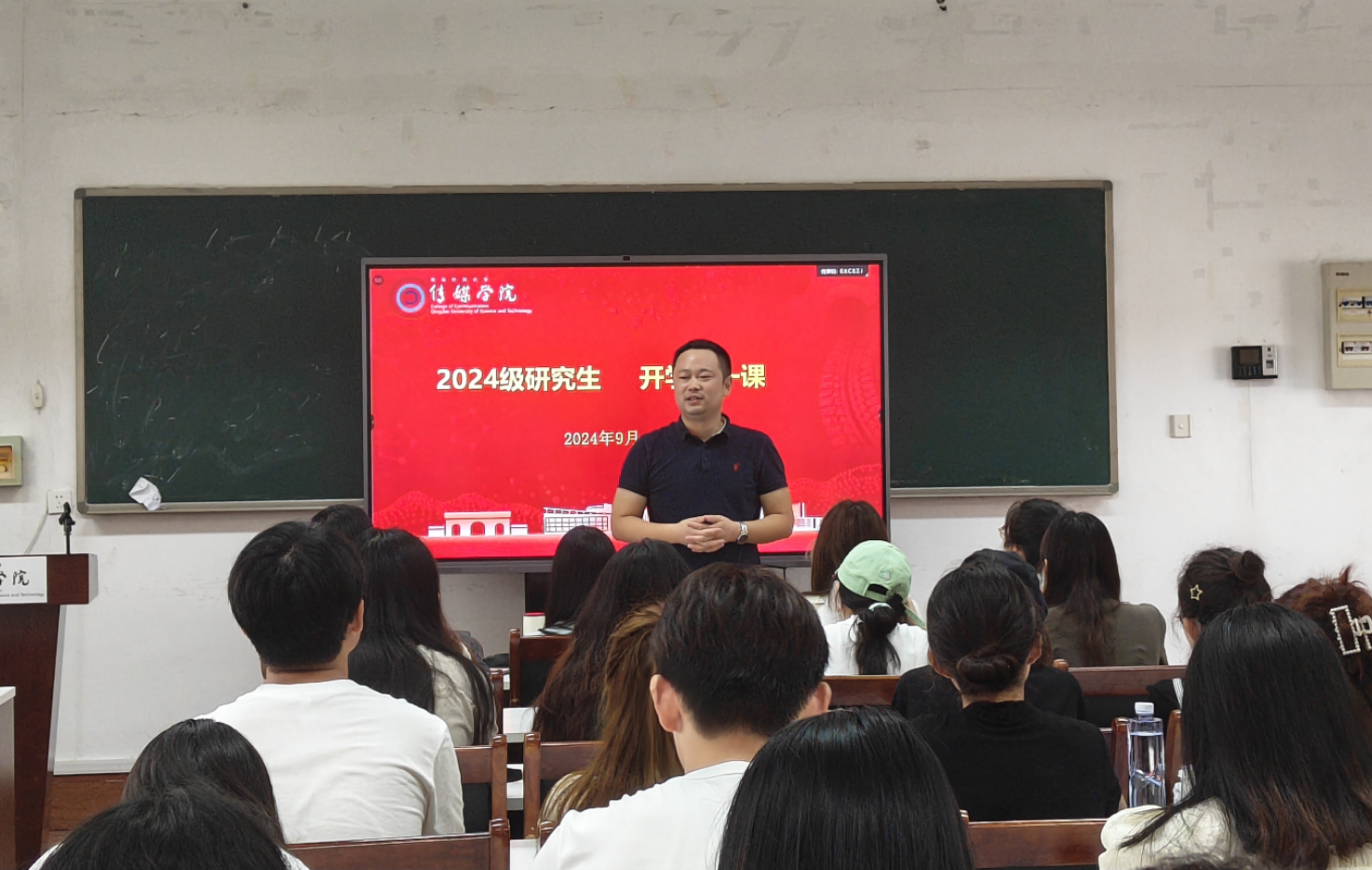 研究生开学第一课的召开,不仅为2024级研究生新生们指明了未来三年的发展方向,让同学们对学院和学科情况有了更深的认识,同时也激发了同学们的科研创新热情以及爱国爱校情怀,进一步强化了大家的使命担当意识。未来,学院将继续引领研究生们传承学术精神,涵养优良学风,为强国建设贡献青春力量,在探索真知中报效国家,真正把科研实践写在祖国的大地上。希望同学们在研究生阶段能够肩负责任与担当,身行力践“明德、笃学、弘毅、拓新”的校训。