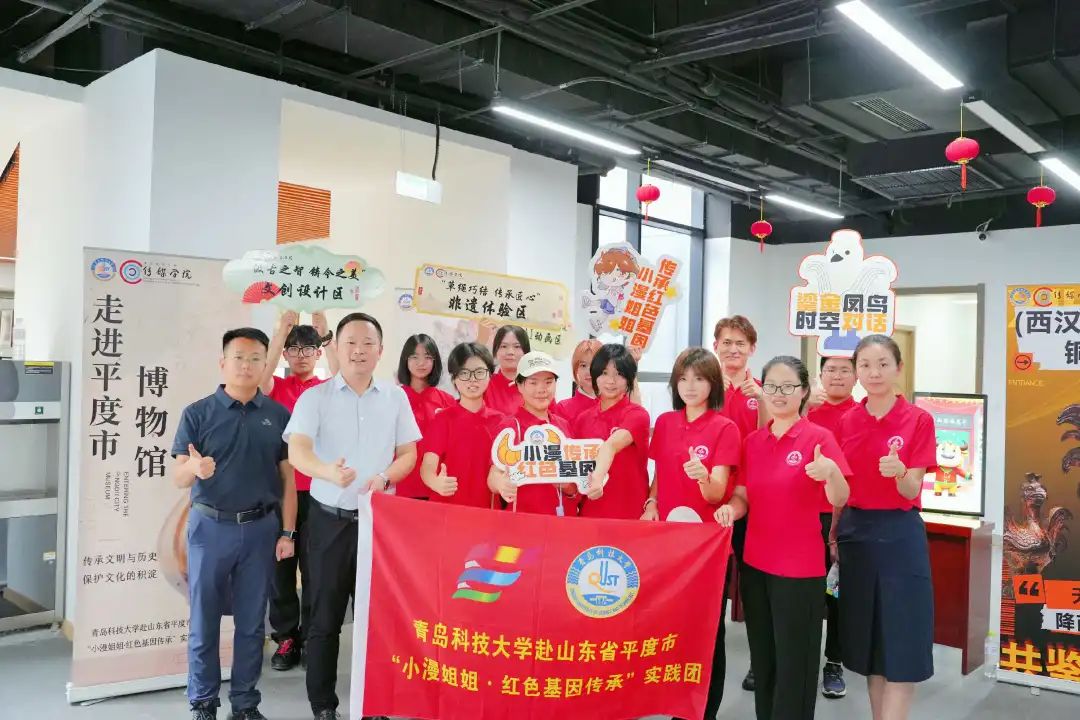yl6776永利集团“小漫姐姐·红色基因传承”实践团由10名队员组建,他们充分发挥动画、广告学、编辑出版学等专业优势,在平度市博物馆开展“青春为中国式现代化挺膺担当”暑期专项实践活动。实践团现场重点展示三项特色成果:一是数字赋能,让文物“活”现起来。团队运用AIGC、H5、3D建模等技术实现文物可视化传播,用数字化的叙事语言,赋予馆藏文物全新的表达方式,让沉睡的文物“活”起来,让宝贵的文化资源成为驱动乡村发展的新引擎。二是汲古铸今,文创设计再重构。团队开发融入馆藏文化符号的团扇、书签、明信片、徽章等实用文创,实现传统文化元素向现代生活载体的创新转化,让现场的领导老师、观众把一份独特的“平度记忆”带回家。三是非遗传承,草绳巧结传匠心。团队联合“平度新河草编”非遗手工艺人推动草编文化传承。通过学习麦秆染色、七股编、立体编等核心技艺,充分展现技艺的本真之美。创新引入“文创+数字+非遗”的推广模式,探索文化传承与乡村振兴的融合发展路径,为传统文化注入新时代活力。