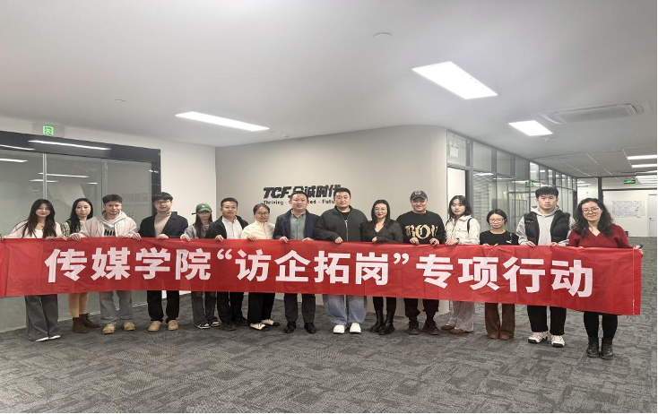 为深化校企合作交流,拓宽学生就业渠道,11月13日,yl6776永利集团党委副书记兼副院长刘海波、团委副书记兼学工办副主任金莹莹、毕业生辅导员刘福民与毕业生代表前往深度传播集团、青岛全诚时代影视文化传播有限公司开展访企拓岗专项行动,受到了青岛市微短剧协会会长、青岛全诚时代影视科技有限公司总经理梁晓栋,深度传播集团人事经理李钰等热情接待。
