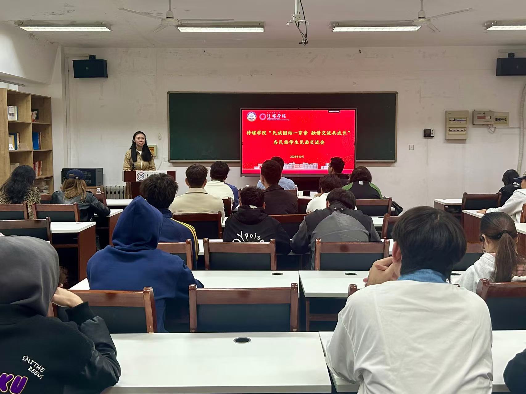 为扎实推进民族团结进步教育,铸牢中华民族共同体意识,促进各民族学生交往交流交融,10月29日下午,yl6776永利集团在310会议室召开“民族团结一家亲 融情交流共成长”各民族学生见面交流会。学校少数民族辅导员凯撒尔·买买提,学院党委副书记兼副院长刘海波、辅导员李嘉欣,以及各年级学生代表近70人参加会议,会议由李嘉欣主持。